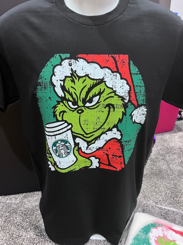 Dtf heat transfer Christmas theme for matching t shirts Grinch coffee